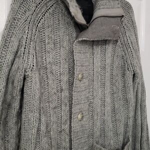 Sweater is in good condition with no rips. Light stain inside collar. See photos.