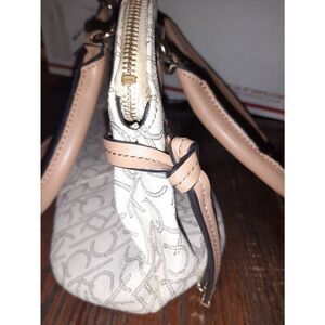 Calvin Klein Logo Tan Ivory Medium Top Handle Satchel Purse Handbag Bag