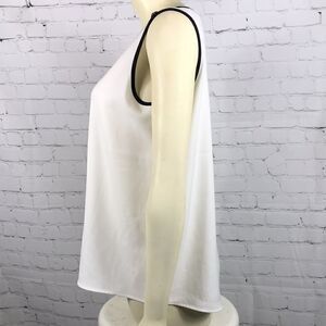 Calvin Klein Medium Suit Blouse NWT polyester spandex extra button. black on Cream.