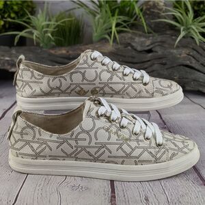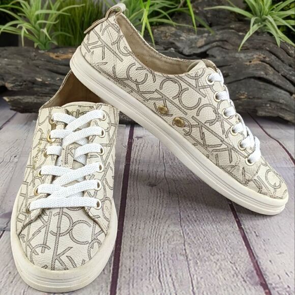 Easy and casual, the Calvin Klein® Michaela Low-top sneakers exude a chic style with their monogrammed design, modern eyelet fabrication and silver-tone hardware.