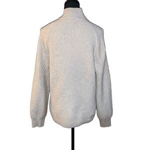 Tan mockneck sweater. Long balloon sleeve. Stretch fabric. 88% polyester/6% nylon/6% spandex. Size: XL. NWOT.