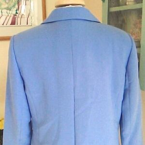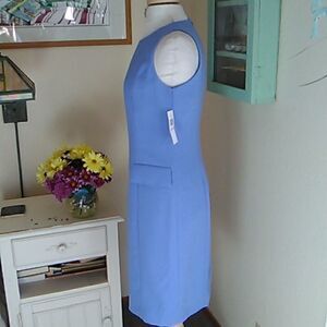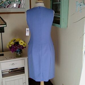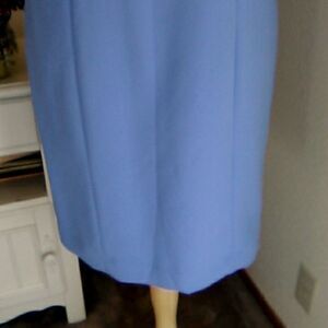 NWT Wedgewood Blue, a Periwinkle blue, suit. Jacket: Open jacket. Fully lined. Buttons at sleeves. Seams to fit front and back. Dress: Princess seams front and back. Faux pockets. Fully lined. Back zip. 38 at chest, 32 at waist, 40 at hips, 38 long from shoulder to hem. Jacket fits comfortably over. Beautiful and new for all year round.