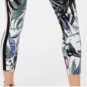 Sleek varsity stripes and a dusky palm print update this look from Calvin Klein Performance, stretch leggings with a high rise for classic coverage.