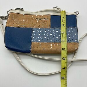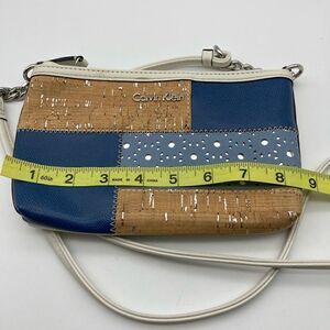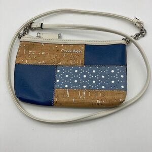 Calvin Klein Saffiano Cork Patchwork Crossbody Tan/Blue Color Pre-owned