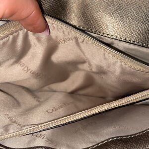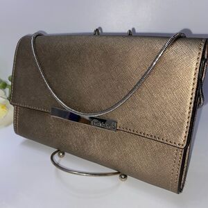 Calvin Klein Saffiano Leather Shoulder Purse Gold Small
