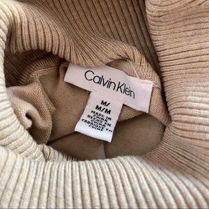 Calvin Klein Sweater Womens Medium Pullover Tan Long Sleeve Turtleneck
