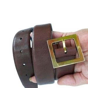 Brown leather gold buckle 1.25" wide belt by Ck Calvin Klein
