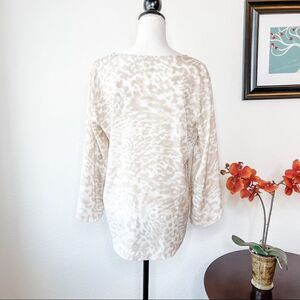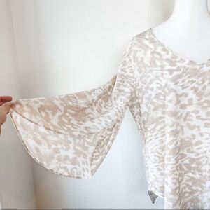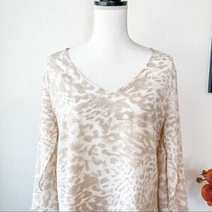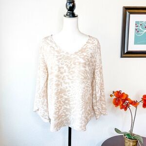 Super cute v-neck tulip sleeve Calvin Klein top with a discreet leopard print pattern. Dress it up with cigarette slacks or down with skinny jeans. Excellent pre-owned condition!