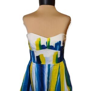 Calvin Klein White Blue Green Yellow Watercolor Strapless dress Size 6