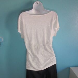Calvin Klein Womens Size M White Linen Tee 38" Bust Silver Sparkle Pullover Top