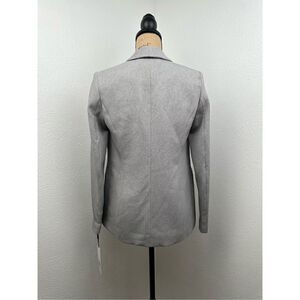 Calvin Klein Women’s Gray Petite Parker Open-Front Blazer Size 4P. It has faux front pockets and shoulder pads.