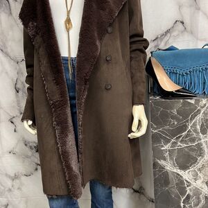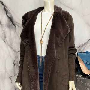 Calvin Klein Brown suede look with a plush for inside Excellent condition no damage 22 inches across the bust a shoulder to bottom 37 inches