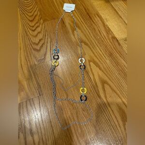 Calvin Klein New with tags Long layered necklace with yellow, black, white, and blue rings
