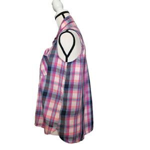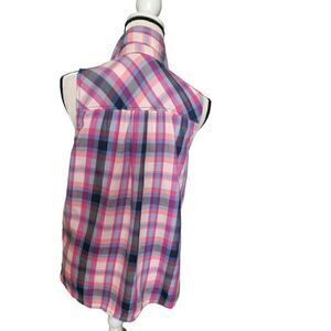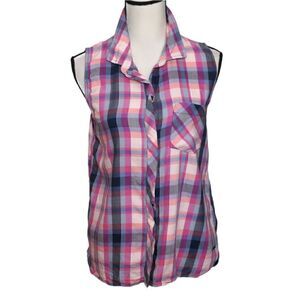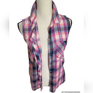 Super soft and lightweight Calvin Klein plaid sleeveless button down collard shirt.