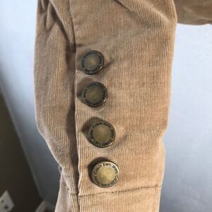 So cute in great condition. Front buttoned blazer with three front buttons. Sleeves have four buttons. Size small