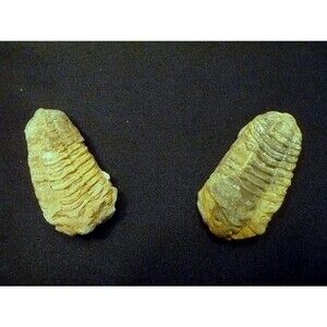 The Calymene trilobite dates to the Ordovician period (505 to 438 million years ago). These trilobites are common fossils from Morocco. Preserved with rusty-colored limonite crystals, these are actually the molds of the shells of Flexicalymene trilobites, and are often found in nodules, loose rocky concretions which reveal their fossil contents when broken open.