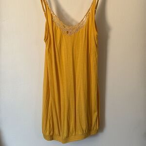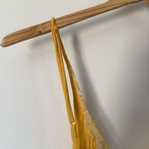 Calypso Christiane Celle Mustard Yellow Lace Trim Boho Tank Top Small