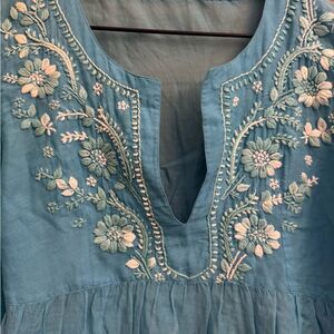 Calypso Christine Celle Size XSmall Cotton Silk Blend Boho Embroidered Blouse