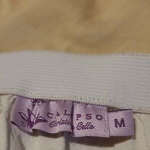 This cream midi skirt by Calypso St. Barth features a charming tiered design that creates a graceful A-line silhouette. Perfect for casual or resort wear, its soft fabric ensures comfort and effortless style. length 25