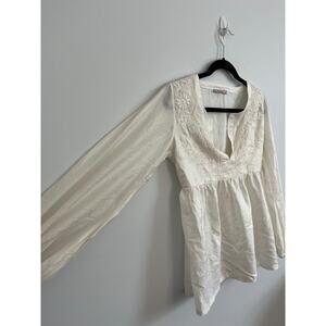 Calypso Embroidered Blouse Women XS Ivory Peasant Boho Cotton Top
