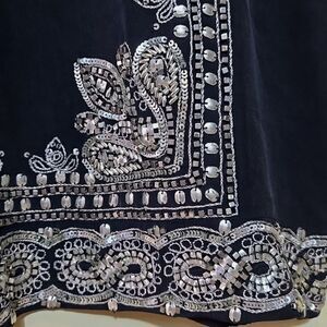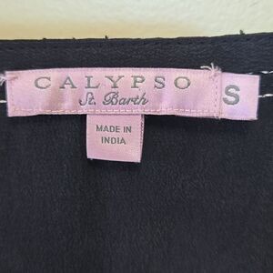Calypso St. Barth Silk Dress Beaded Embroidered Black Silver Embellished
