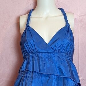 Calypso St Barth 100% Silk Blue Ruffle Juno Dress size Small