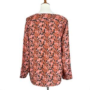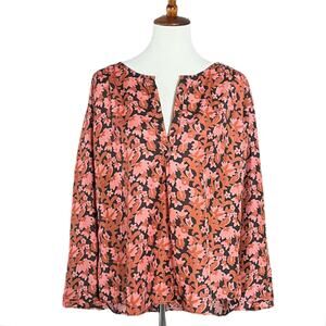Calypso St. Barth 100% Silk Long Sleeve Floral Blouse Fall Career Top Size Large