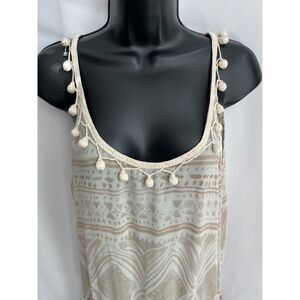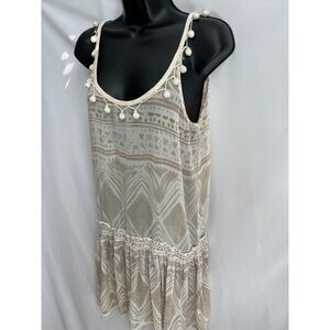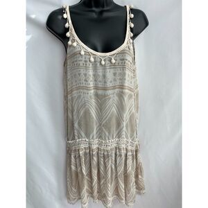 Calypso St Barth 100% Silk Pom Pom Mini Beach Cover Dress Beige Boho S Coastal