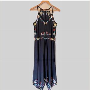Calypso St. Barth 100% Silk Embroidered Handkerchief Hem Midi Sundress XS