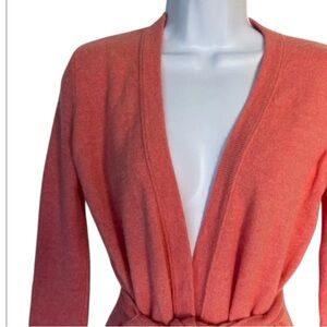 Calypso St Barth cardigan in coral pink. Actual color is somewhat lighter than photos. 100% cashmere. Open front. Belted. Bust 20” length 31”. Excellent condition. Size XS