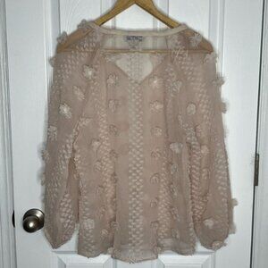 Calypso St. Barth 3D Floral Pom Cream Boho Top