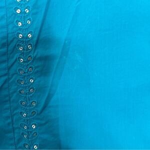 Calypso St. Barth Aqua Blue 3/4 Sleeve Embroidered Cotton Tunic Women's size M