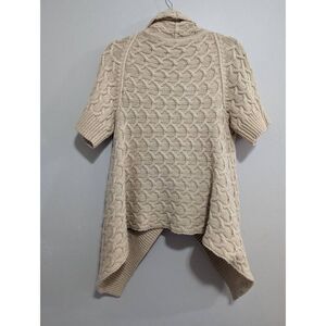 Short sleeve asymmetric cardigan. Cable knit cozy sweater. 52 % wool 35% baby camel 13% polyester.