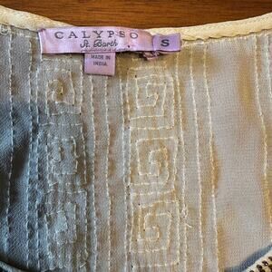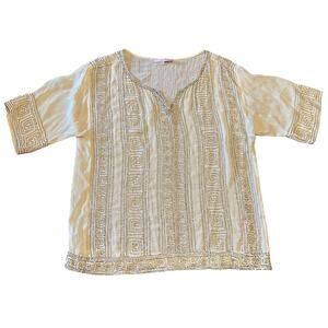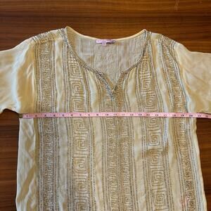 Calypso St Barth Beaded Butter Yellow Drapey Sheer Top, Coastal, Size Small