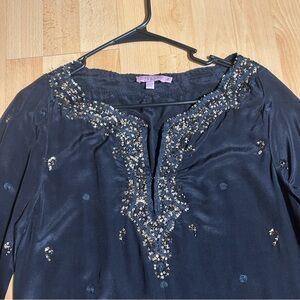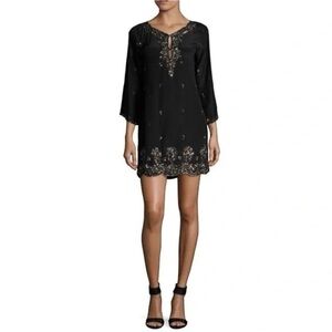 Calypso St. Barth Black Silk Embroidered Tunic Dress 3/4 Sleeve Small