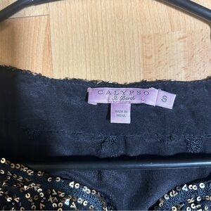 Calypso St. Barth black silk embroidered with gold beading mini dress. Size small 100% silk. This dress is stunning!!! In excellent condition, doesn’t appear to have any missing beading