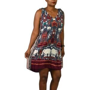 Calypso St Barth Doyah Silk Dress Red Ikat Tunic Elephant Jersey Bohemian Small