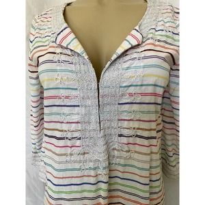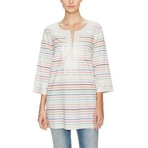 Calypso St. Barth Dress Mini Tunic Hester Striped 3/4 Sleeve Cotton Embr…