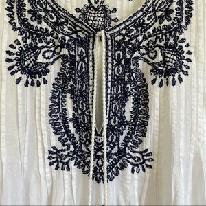 Calypso St Barth Embroidered Pleated Beaded Long Sleeve Tunic Beachy Coastal Top