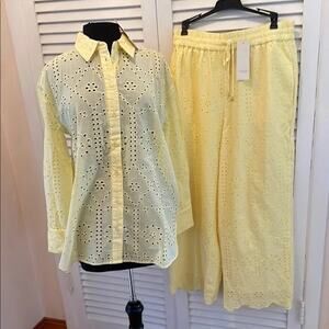 Calypso St. Barth Eyelet Set Women’s XL Yellow Button Shirt & Pants Lounge