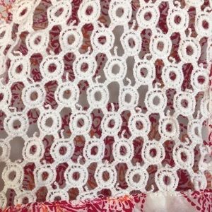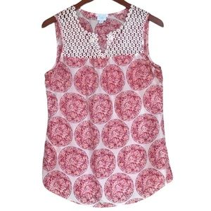 Calypso St Barth For Target, 100% Silk, Crochet Detail, Sleeveless Pullover Top. Light & airy with top crochet detail and circular floral medallion print. Size small. See photos for measurements to ensure fit.