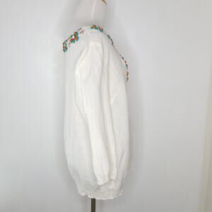 Calypso St. Barth Linen Blouse Embellished Beaded White Turquoise Women Large