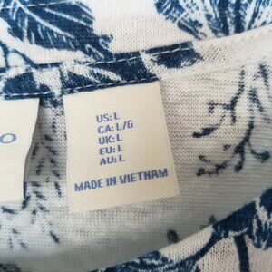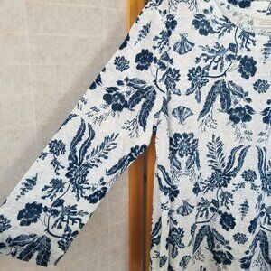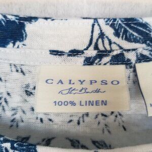 Calypso St. Barth's 100% Linen Shirt Top 3/4 Sleeves Blue White Print Size Large