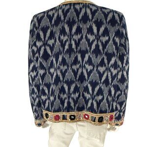 Calypso St. Barth Navy Akillna Ikat Jacket With Colorful Embroidered Mirror Deta
