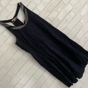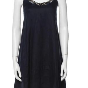 Calypso St Barth Navy Blue Linen Beaded Sequin Summer Formal Neck Tank Dress XS
