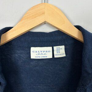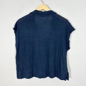 Calypso St Barth Navy Linen Boxy Polo Tee Cutout Detail Size XL Women's