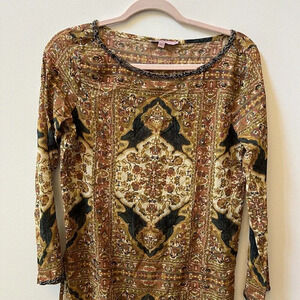 Calypso St Barth Silk Blend Beaded Dallion Tunic Top