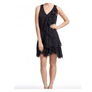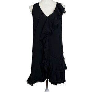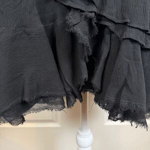 Calypso St. Barth Oyiba silk ruffle mini dress Black Raw Hem Sleeveless Large. v-neck, cascading ruffles down the front and along the hem. It is made from 100% silk and has raw edges on the shoulders and hems. Excellent condition. See photos for details and unstretched measurements. View my closet to add other items and bundle to save with one shipping fee!