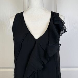 Calypso St. Barth Oyiba silk ruffle mini dress Black Raw Hem Sleeveless Large