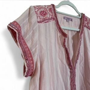 Calypso St. Barth Pink Embroidered V-Neck Blouse | Boho Size Large